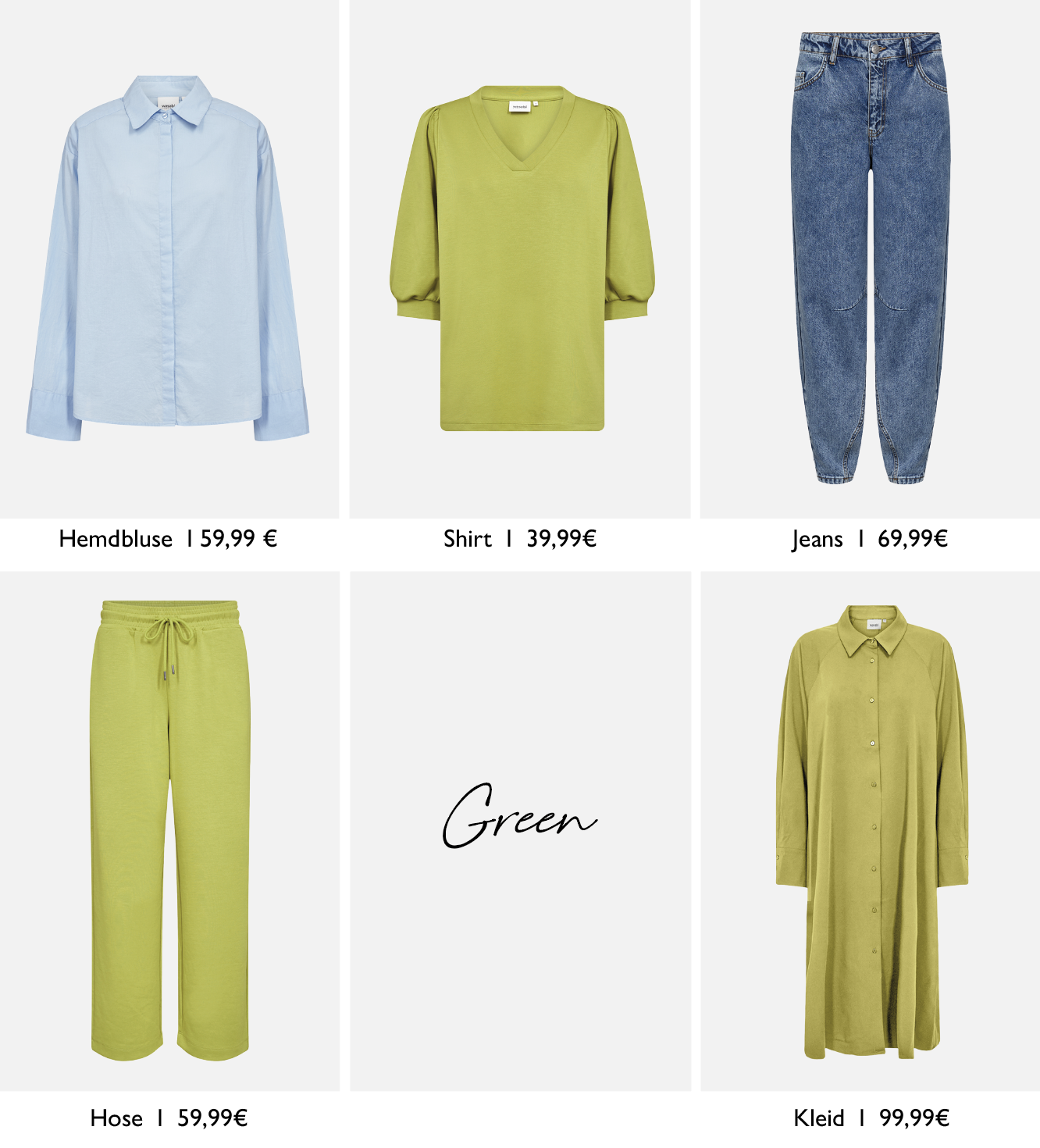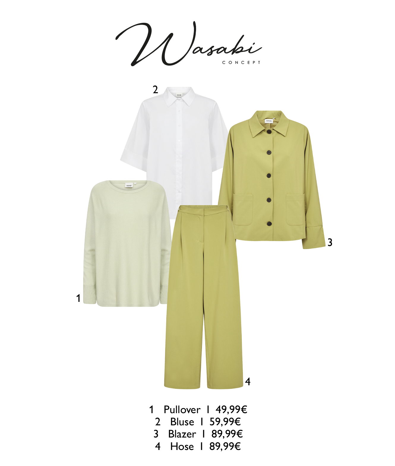 Der Frühling wird grün! Mit Wasabi Concept kommen frische Farben, fließende Stoffe und moderne Schnitte in deinen Look. Die Styles lassen sich wunderbar kombinieren und sorgen für entspannte Outfits. Perfekt für die ersten warmen Tage.